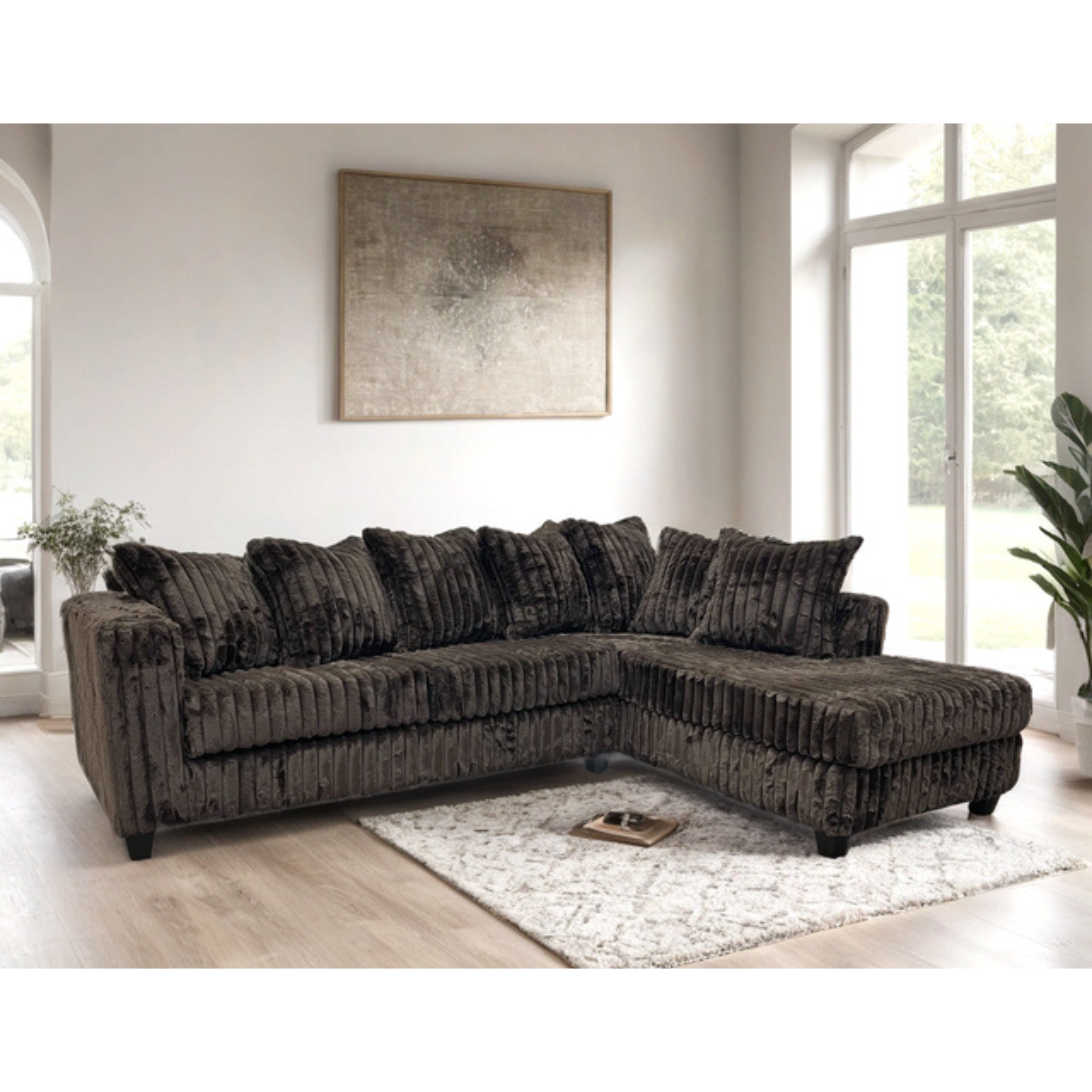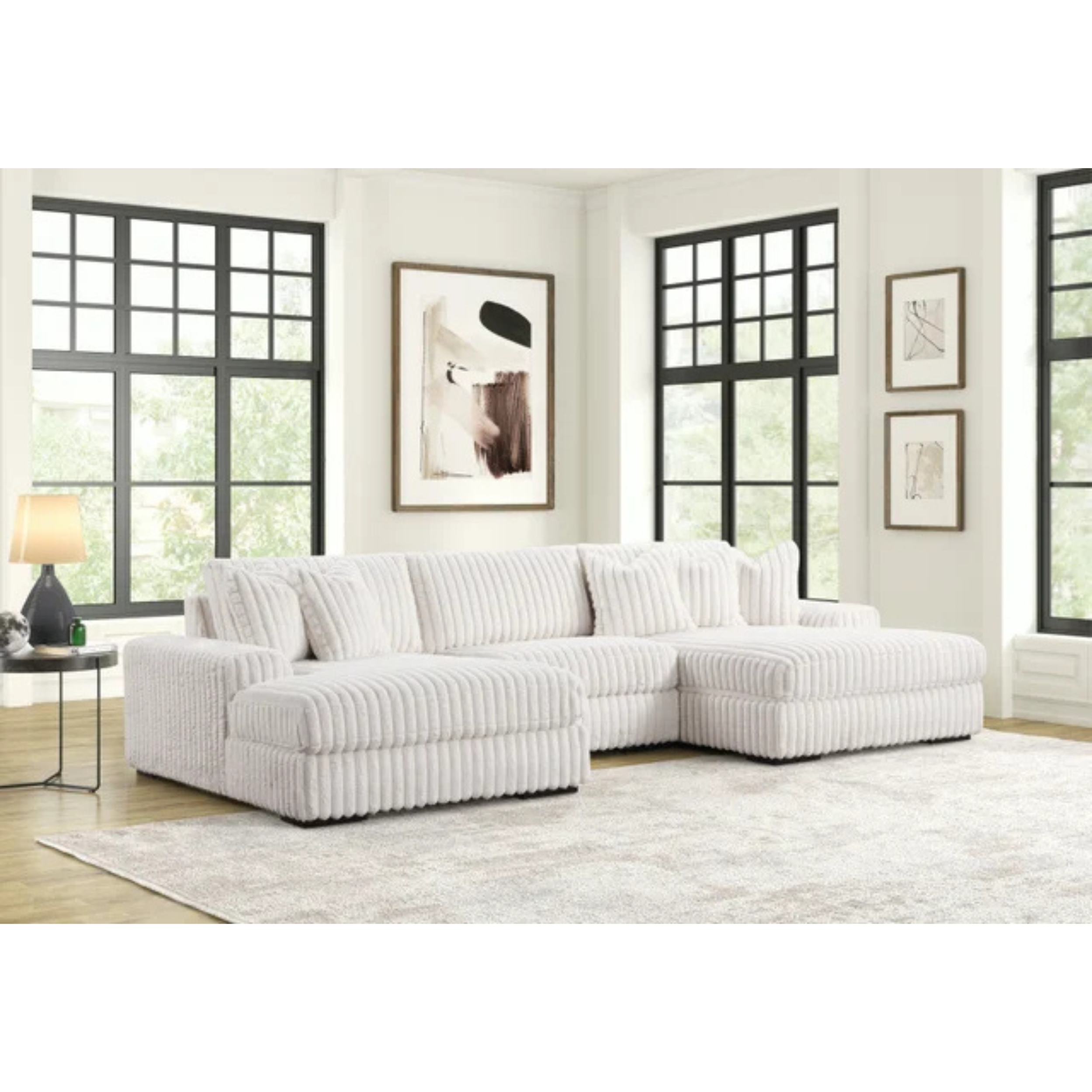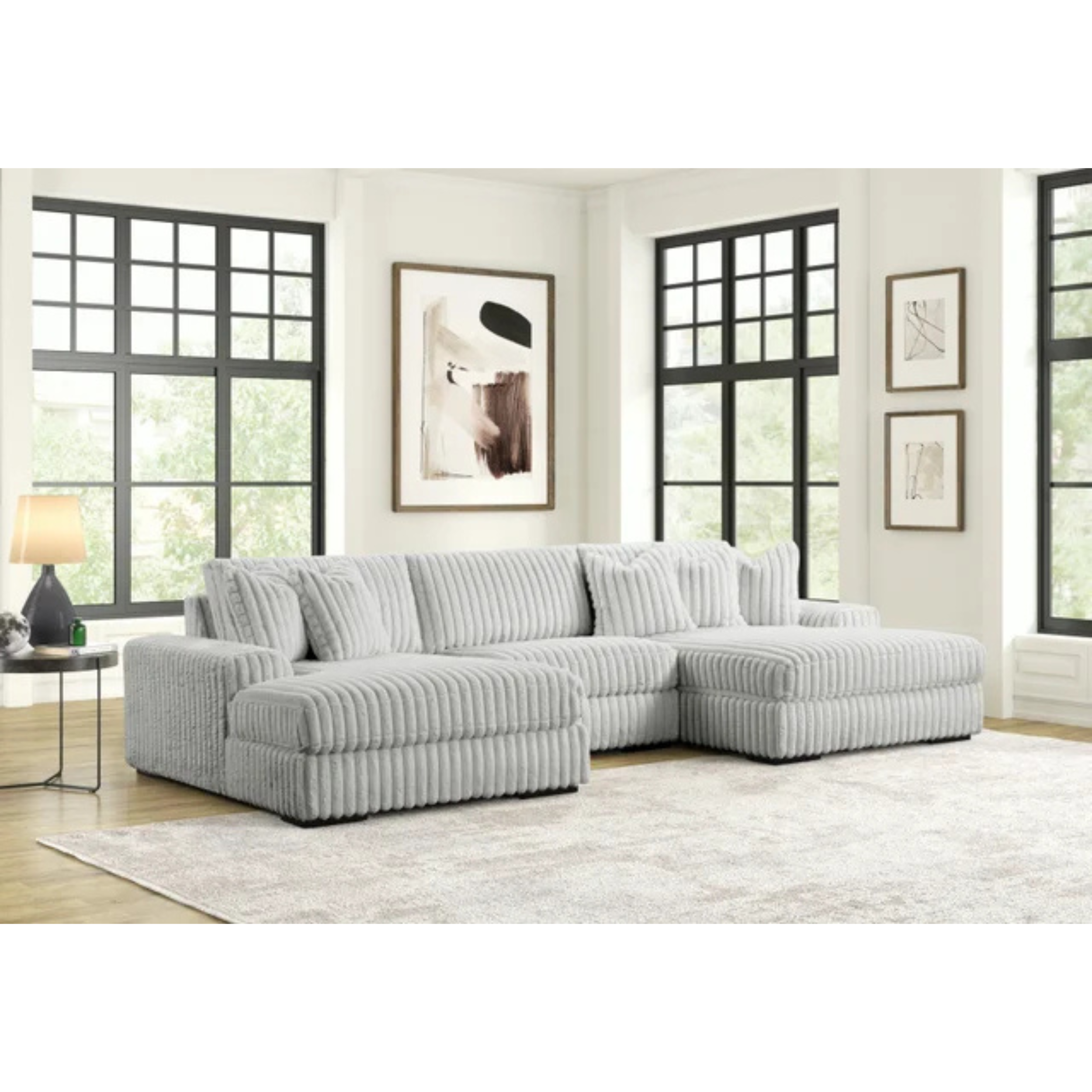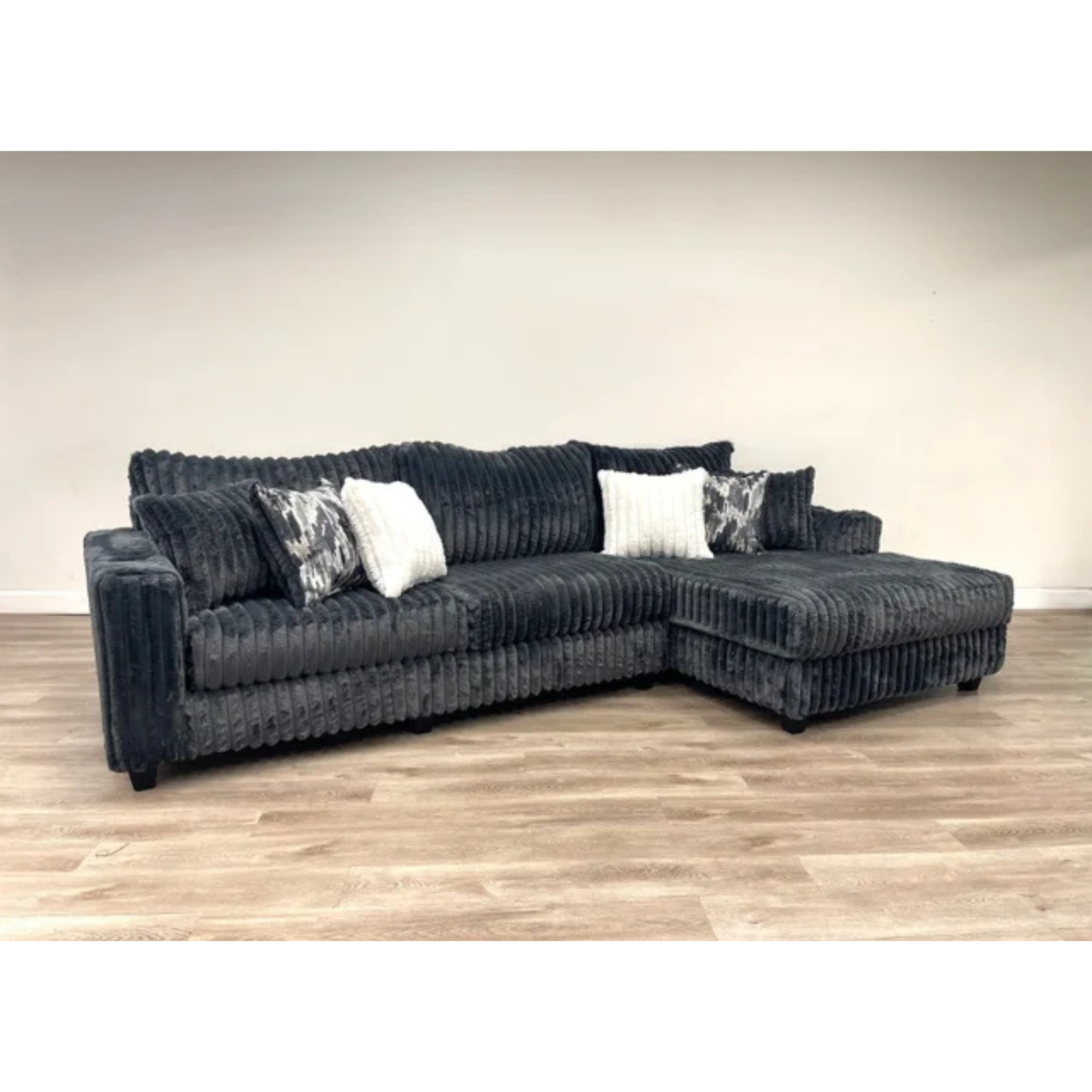 The Marshmallow Sectional features an oversized L-shaped design upholstered in soft beige and black corduroy fabric, combining spacious comfort with a refined texture. Its generous proportions...