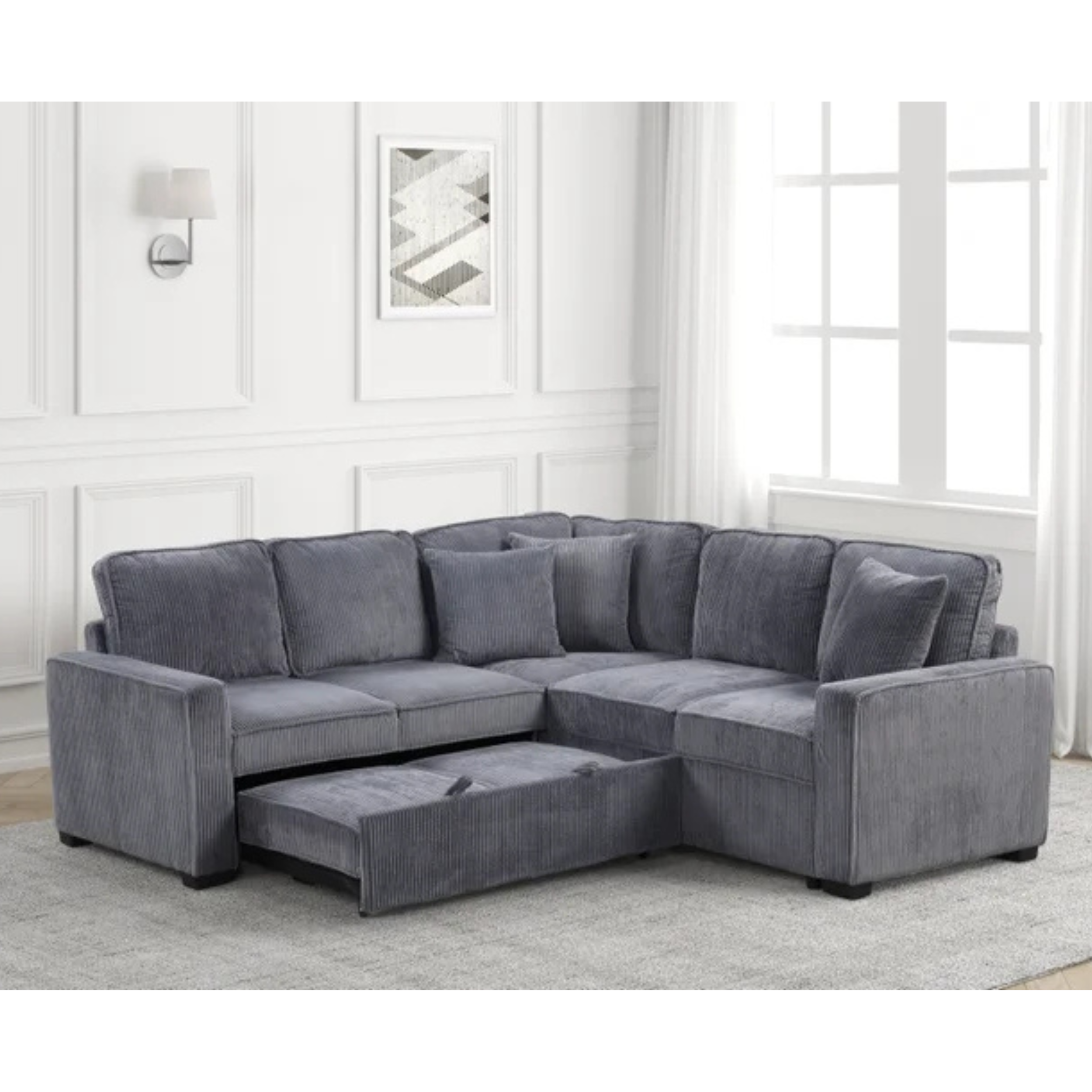 The Forever Sleeper Sectional blends the timeless comfort of corduroy upholstery with the convenience of a pull-out bed, enhanced by built-in USB ports and integrated storage....