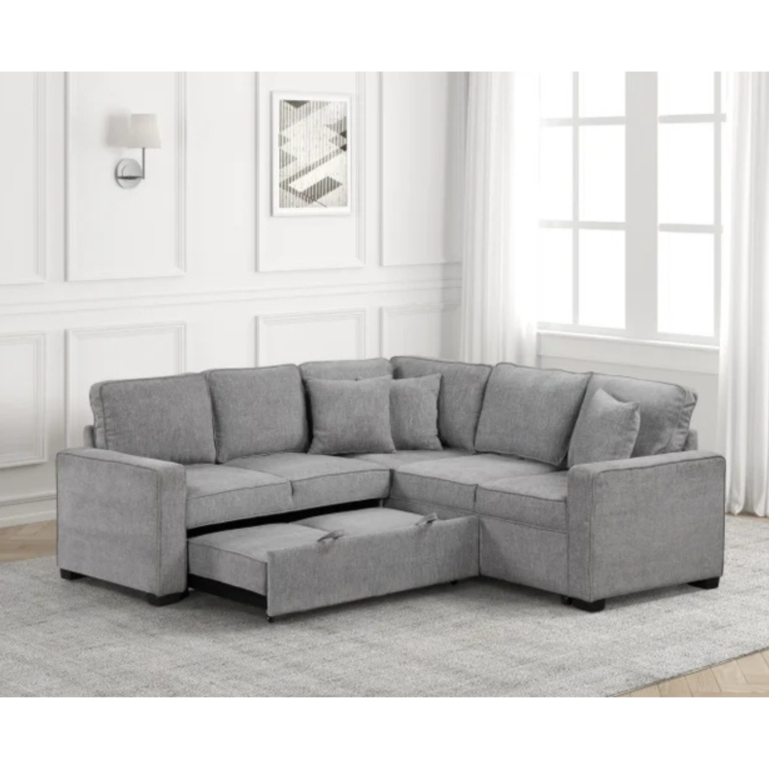 The Ariel Sleeper Couch combines modern style with practical functionality. This contemporary sectional features a convenient pull-out bed, perfect for accommodating overnight guests without sacrificing space....