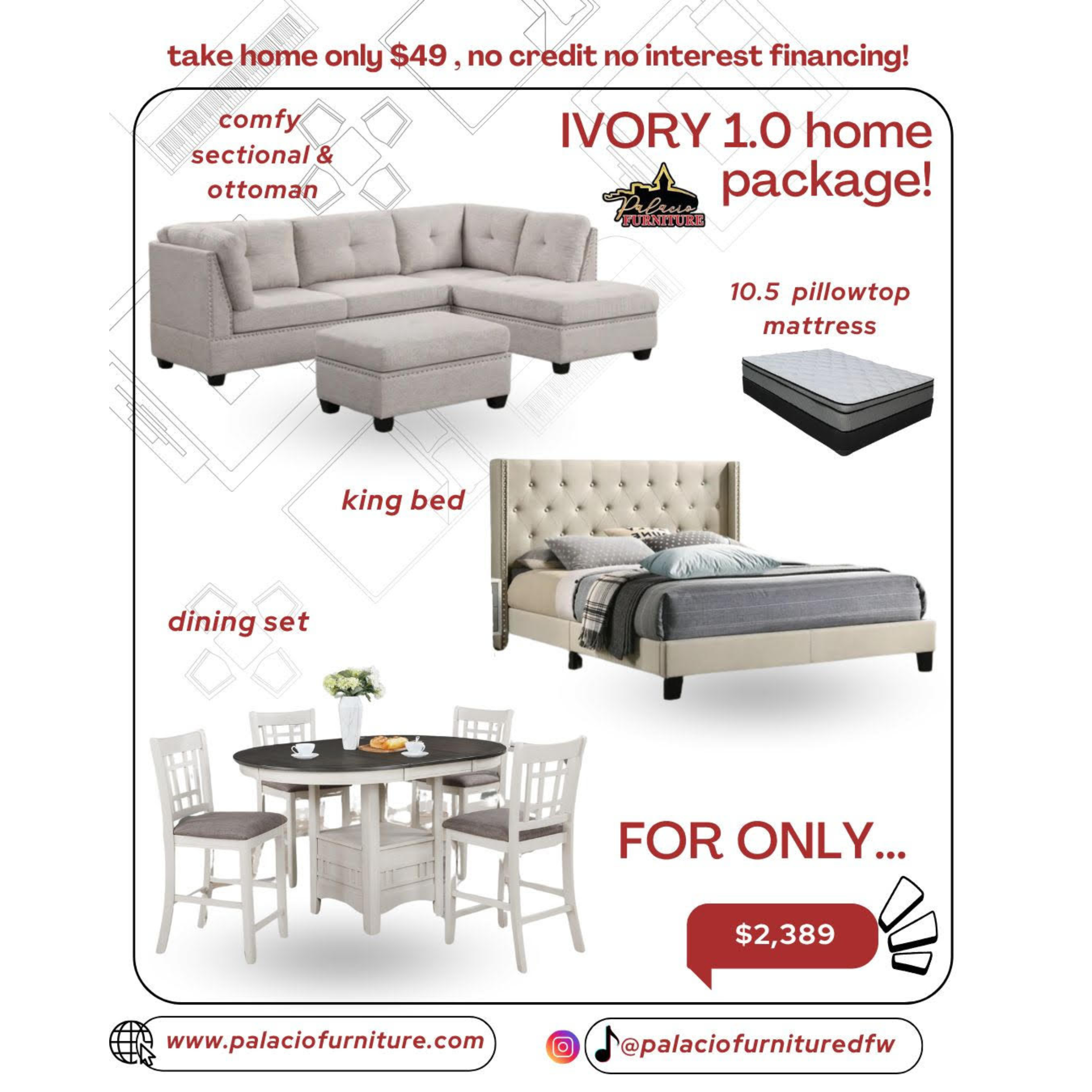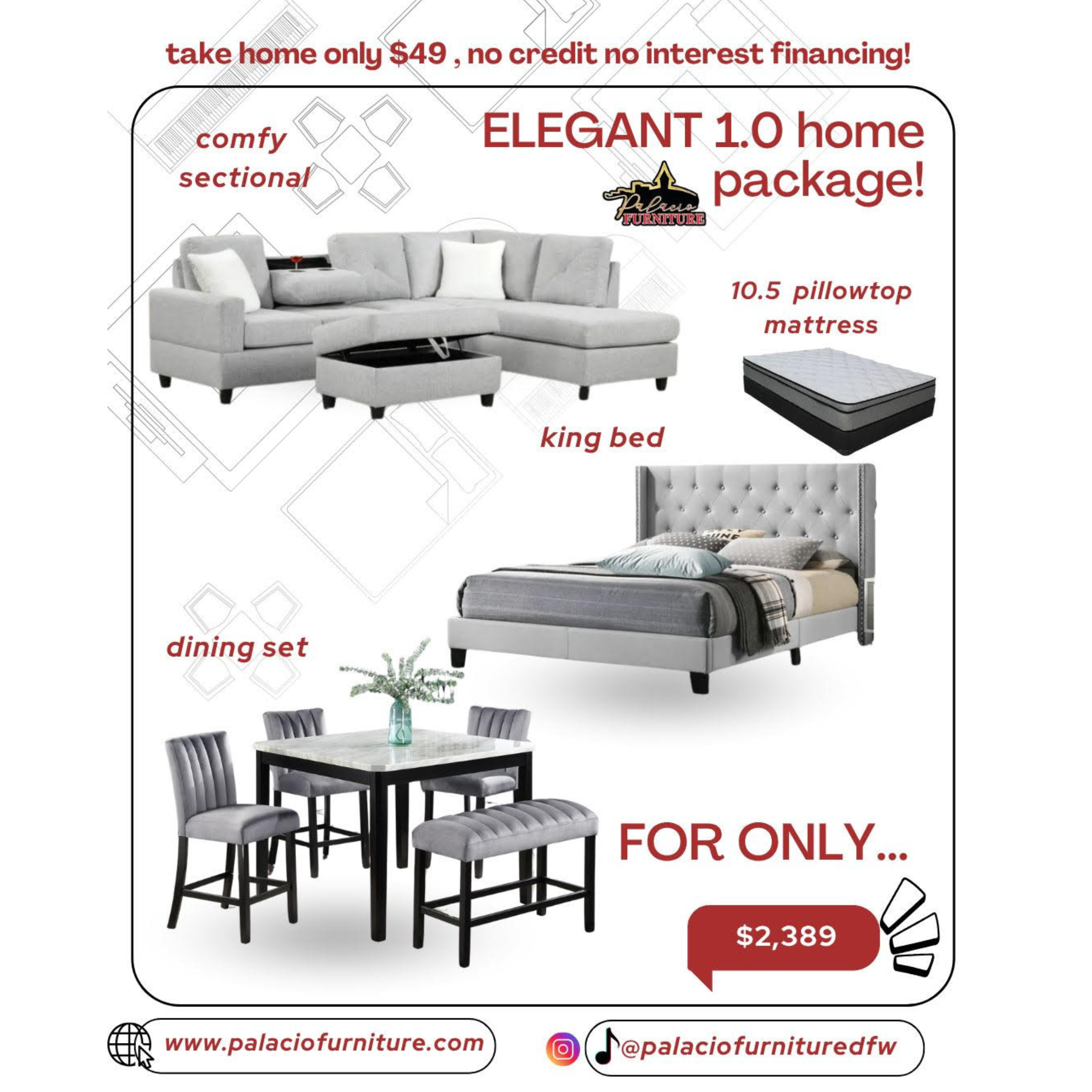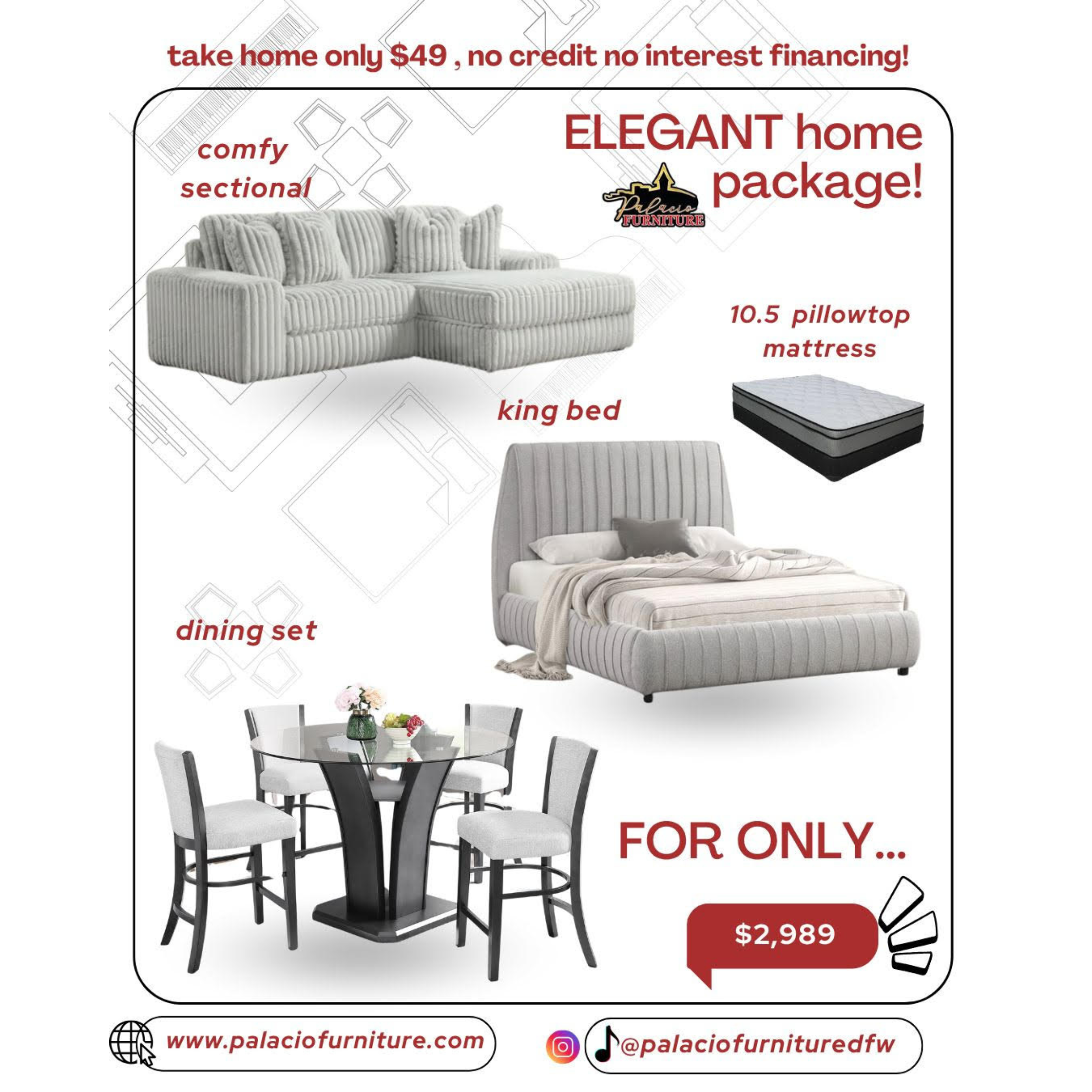 Transform your entire home effortlessly with Palacio Furniture’s exclusive Home Packages. Designed for those who desire a cohesive, stylish, and affordable home makeover, our bundles include everything you need to furnish your space with ease.