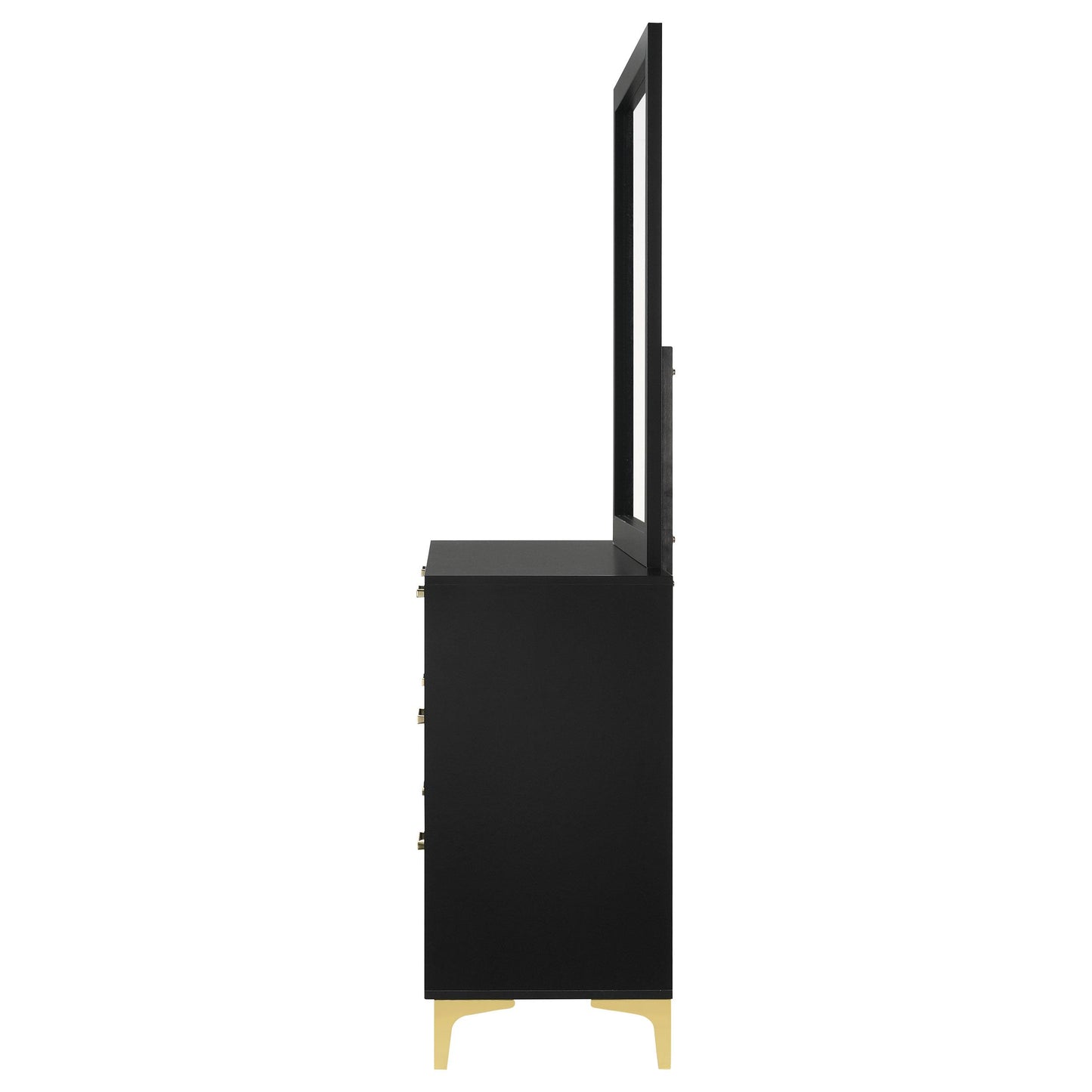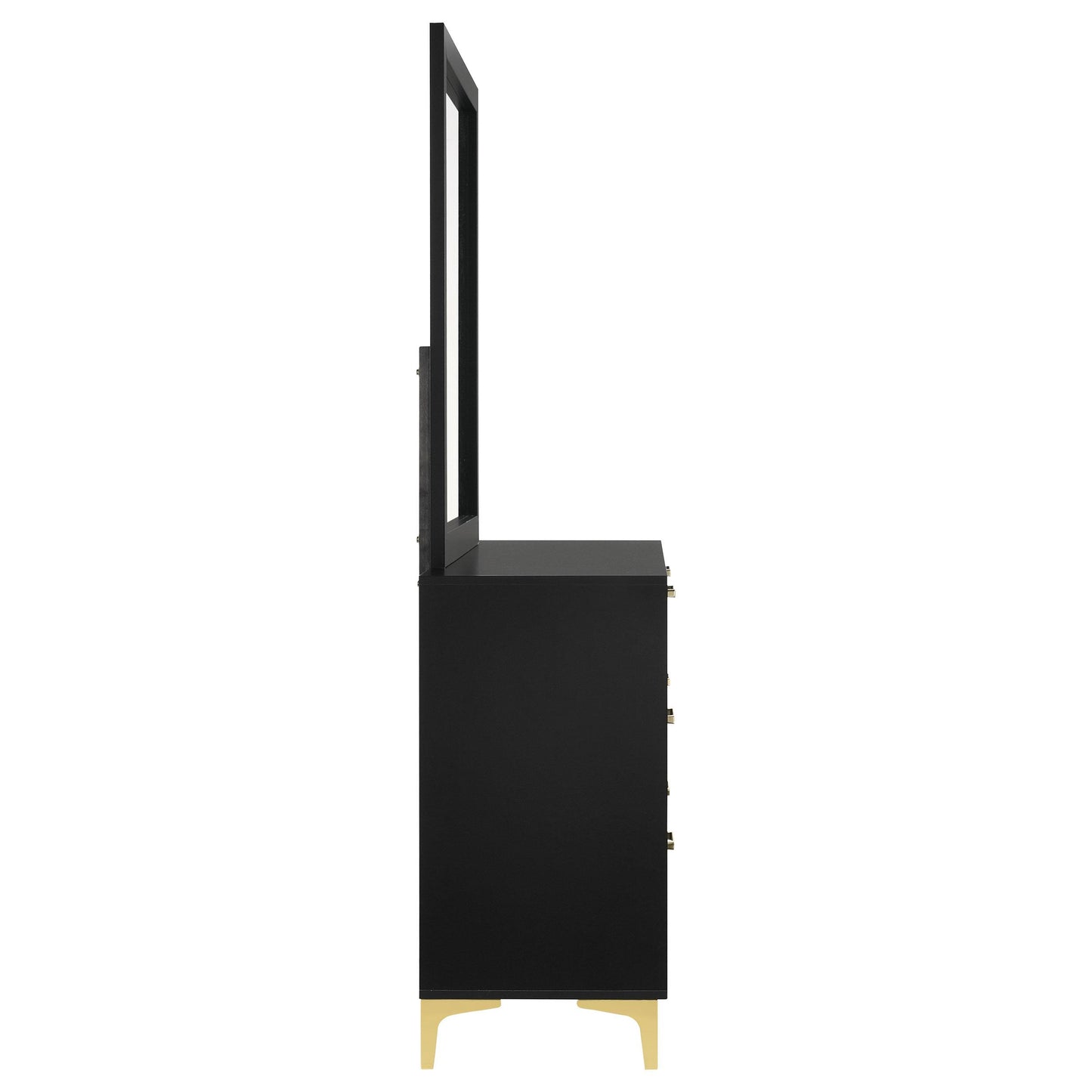 • Elegant bracket legs in gold finish, complementing the drawer hardware