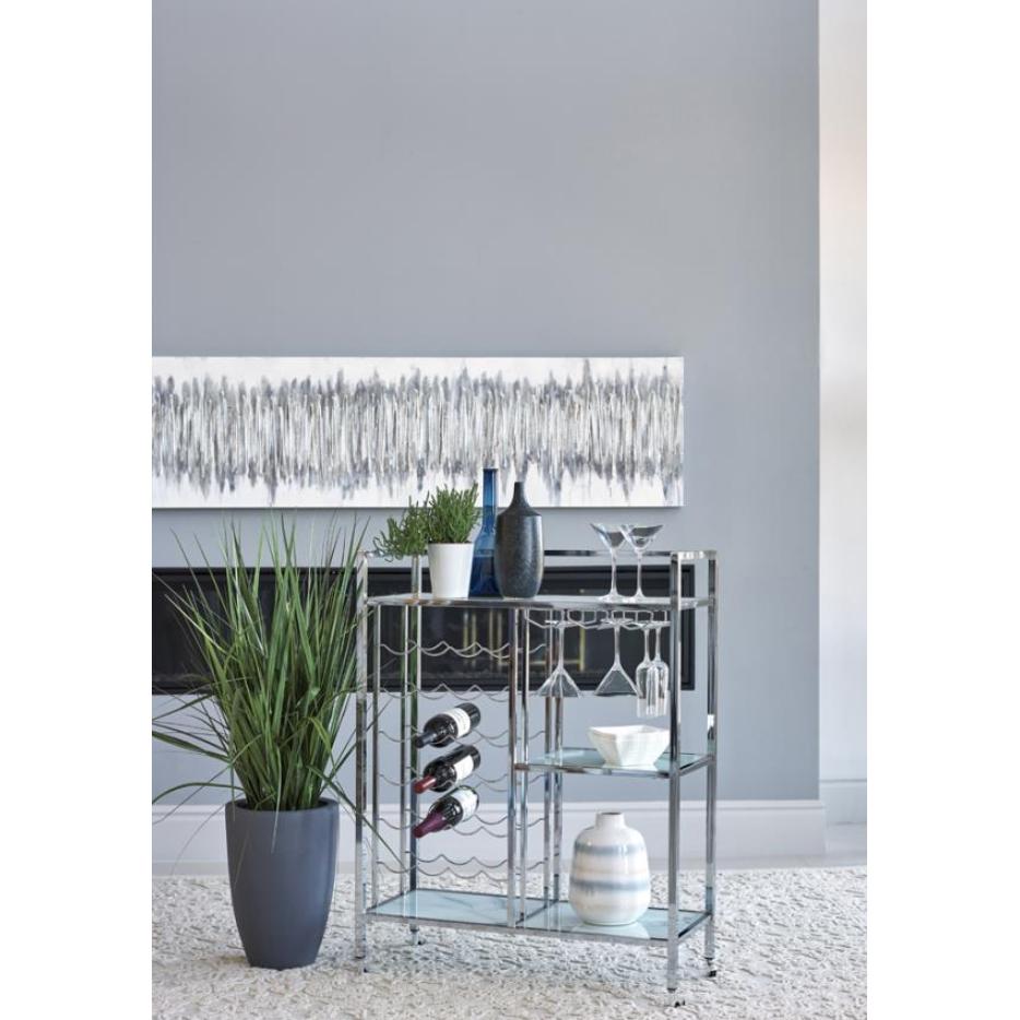 • Features three (3) shelves, stemware racks, and twenty four (24) bottle wine rack
