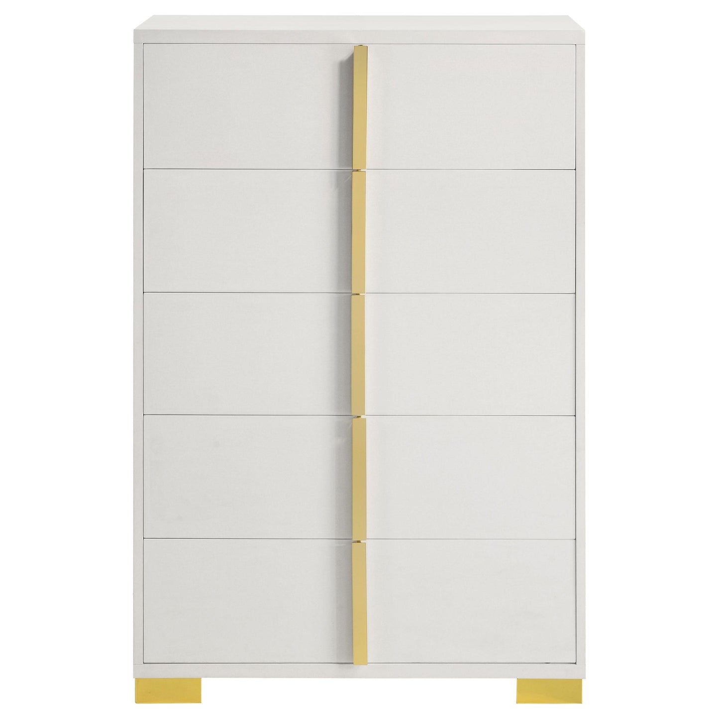 β’ Elegant five-drawer chest with modern design details and Art Deco vibe