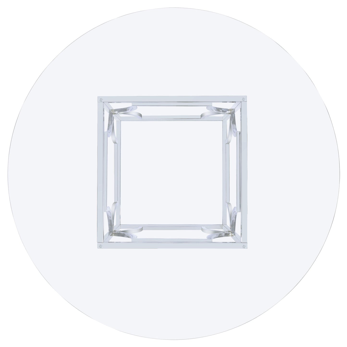 • 54" round clear tempered glass top and stylish patterned base in polished chrome finish