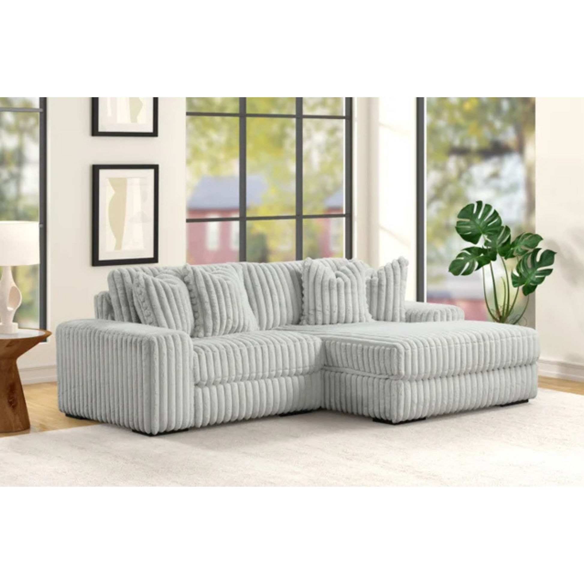 Transform your living space with this Elegant Home Package, featuring a king-sized grey bed & pillow top mattress for restful nights, a sleek glass-top dining set with four chairs perfect for gatherings, and a two piece stylish grey corduroy sectional that add modern comfort. This comprehensive deal offers quality and style for every room, making it an excellent choice for furnishing your entire home efficiently and elegantly.